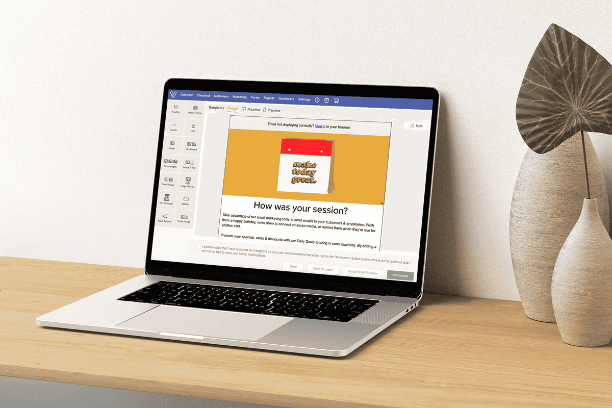 Vagaro’s Email & Text Marketing features are automated and incredibly intuitive. The marketing campaign builder uses a drag-and-drop method, allowing for customization and ease of use. You can create a completely custom list of recipients, or automatically mass distribute to your clientele before & after appointments.