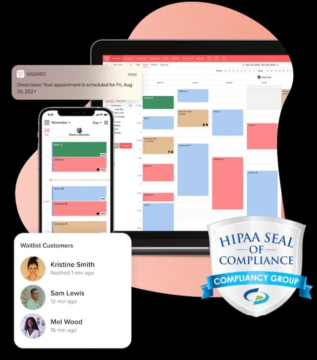 Reputable scheduling platforms, like Vagaro's, prioritize HIPAA compliance, ensuring that all patient data, including Electronic Health Records (EHR), is handled securely and confidentially. Encryption protects patient data from unauthorized access, while access controls allow your practice to restrict who can view or change your patients’ records.