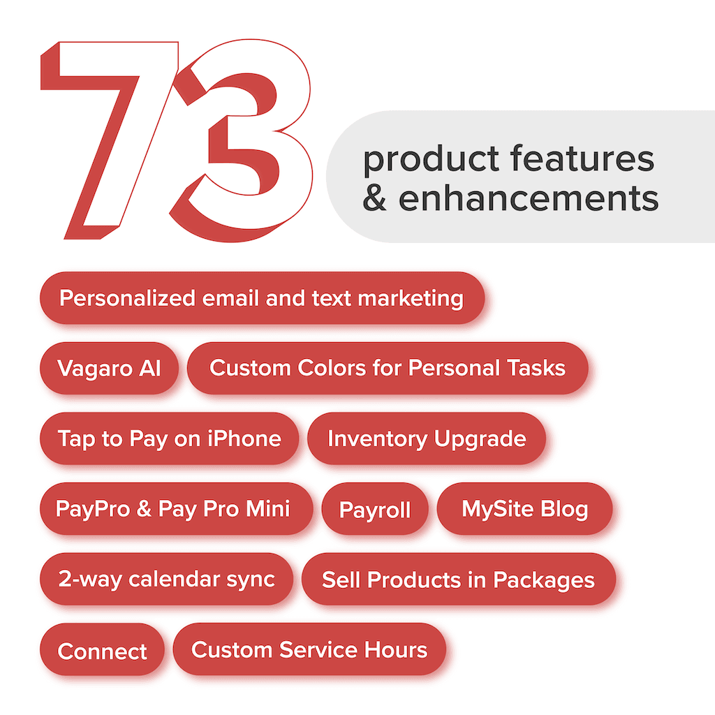 From integrated AI technology to improved customization features and more powerful (and flexible!) point of sale solutions, Vagaro empowered businesses to be more in 2024.