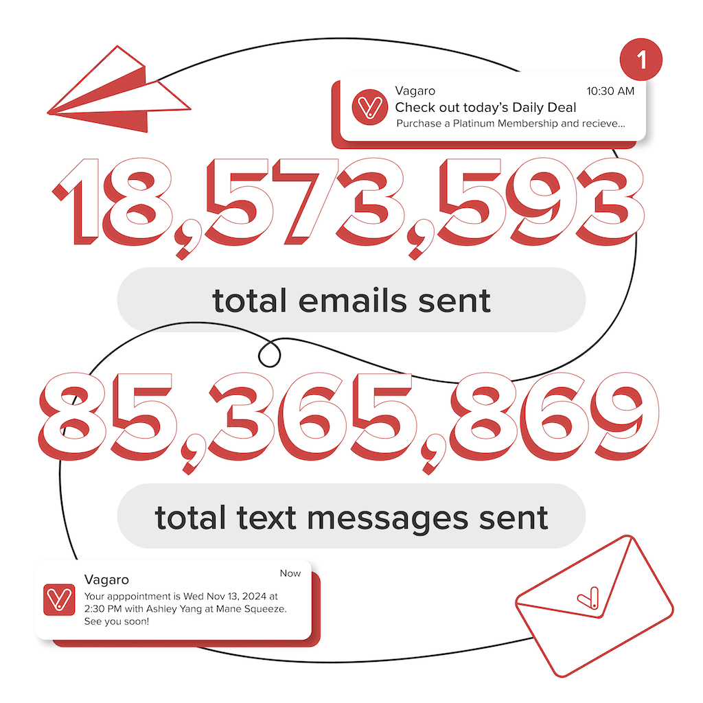 Whether you were marketing daily deals and holiday promotions; sending birthday wishes and appointment reminders; or messaging clients directly via Vagaro’s Connect app, you stayed top of mind for clients in 2024, and the numbers prove it:
