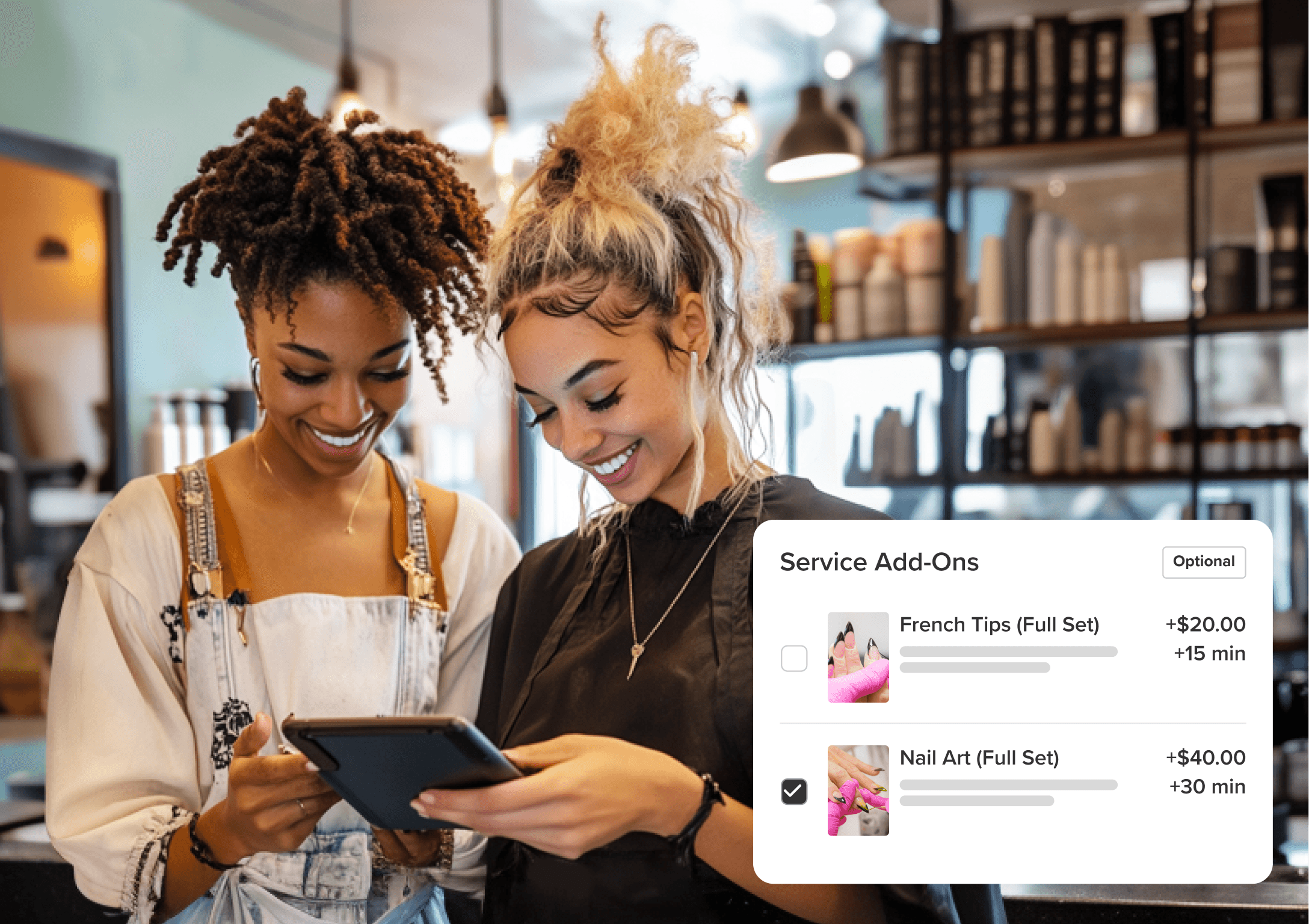Create a seamless client experience by automatically offering service add-ons during online booking, letting customers enhance their appointments without any extra effort from you.
