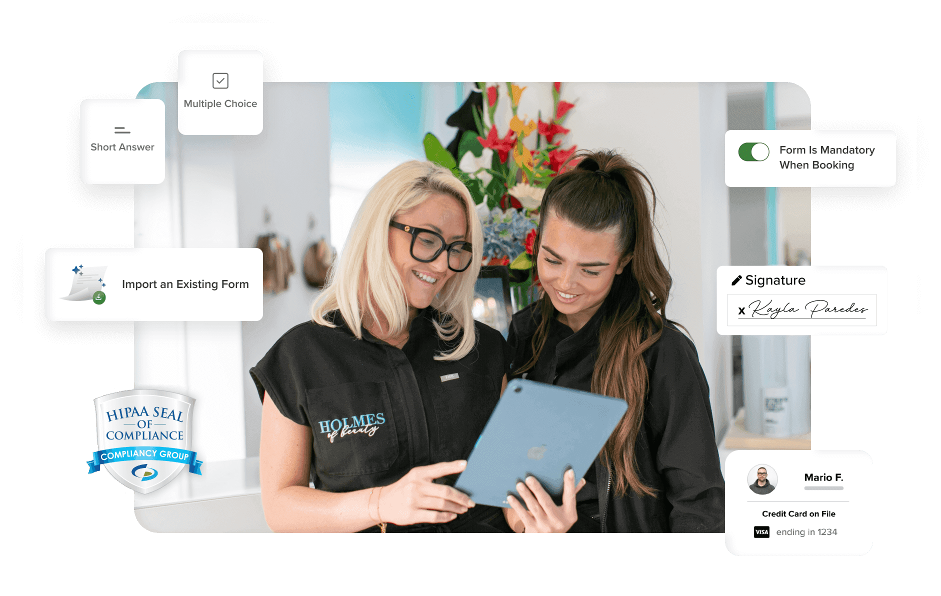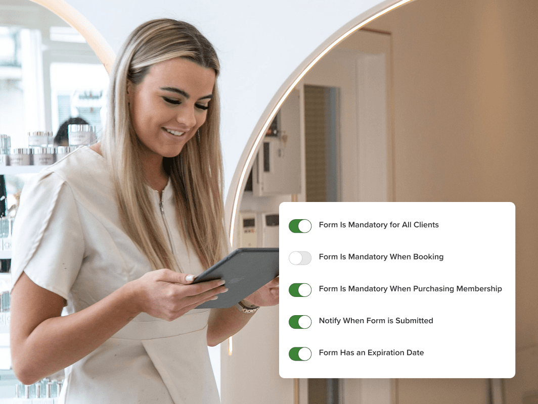 Collect client information automatically during booking, Reduce wait times with advance form completion, and keep all records secure, compliant, and easily accessible.